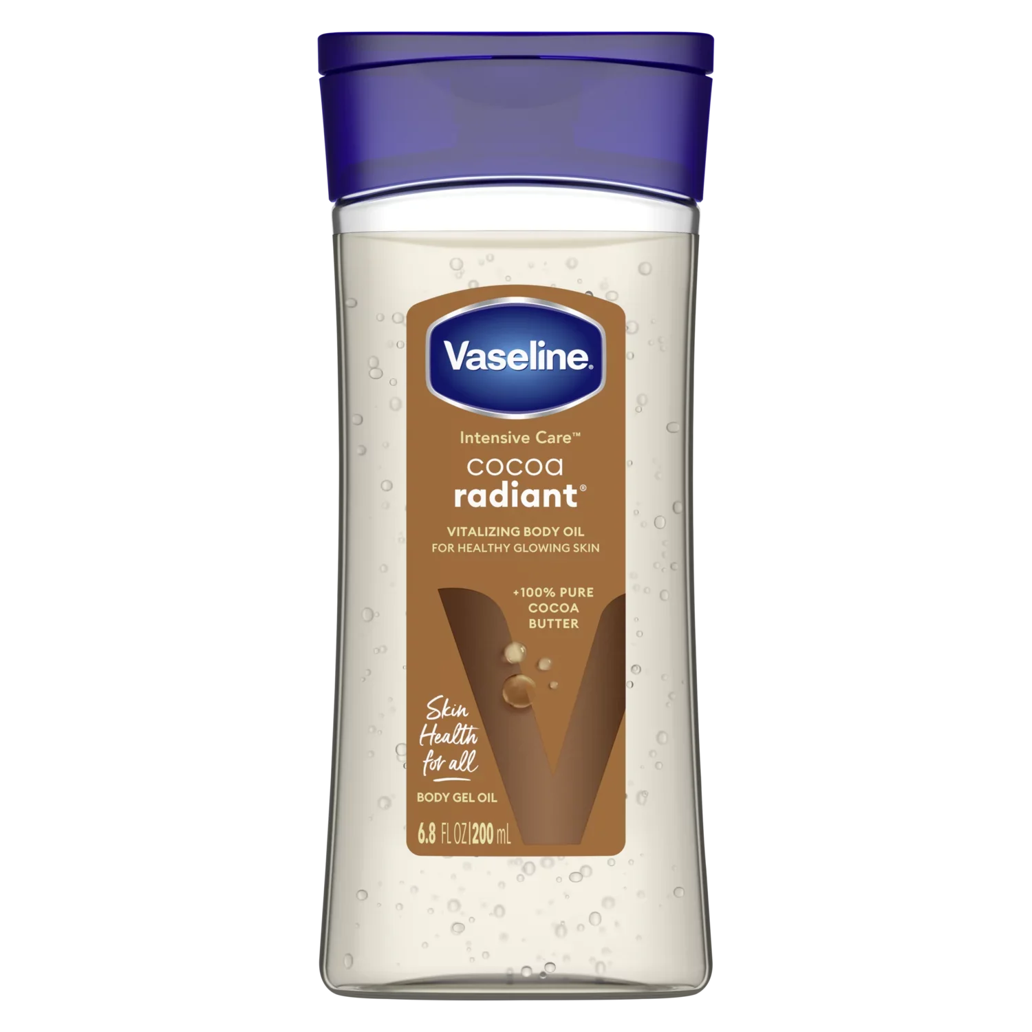 Vaseline® Cocoa Radiant Gel Oil's non-greasy but rich formula combines pure cocoa butter and a replenishing oil that gives skin a natural, healthy glow.